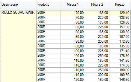 Casi tipici di prodotto con questa tipologia di tabella-prezzi sono le tende a rullo/verticali/plissettate e le tende da esterno (tende da sole).