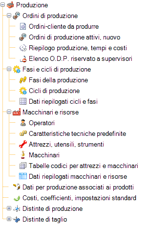 Diamo una rapida occhiata alle voci del menú produzione per poi entrare nel dettaglio delle fasi e dei cicli.